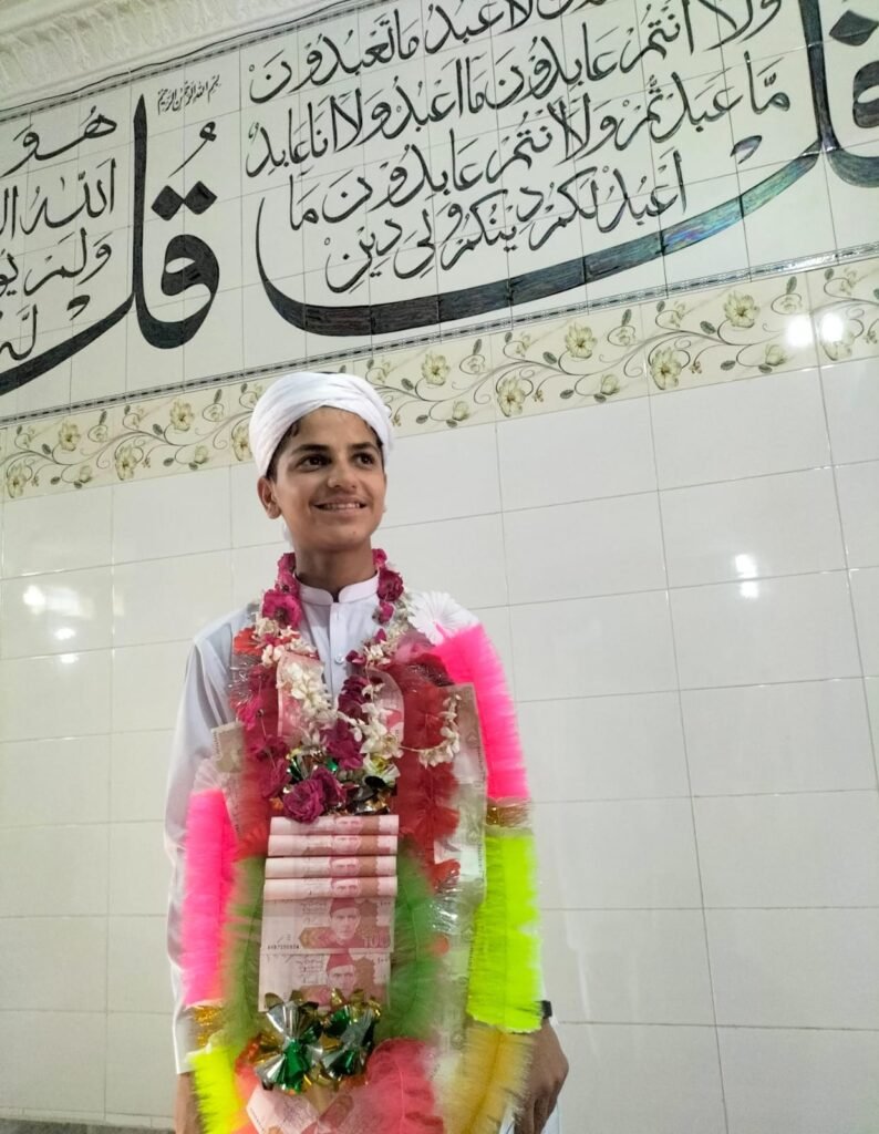 هغه چې د ۱۳کلونو دی د خدای په مرسته او د کورنۍ په همکارۍ یې قران کریم حفظ کړ.